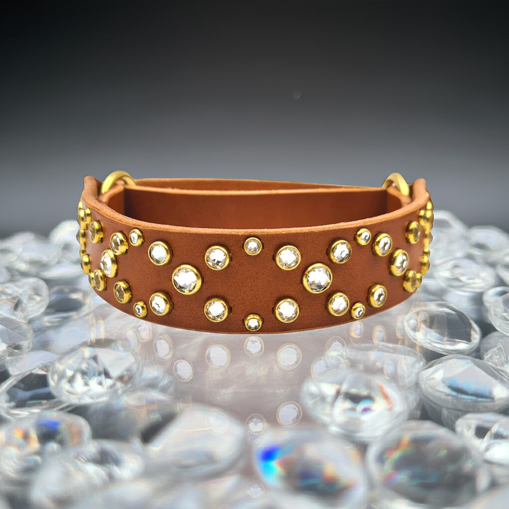 For the most discerning dogs only, my Zen dog collar is re-released as the Zen Master. Genuine Austrian crystals in the famous helix pattern and shown here with a Lariat Addition.